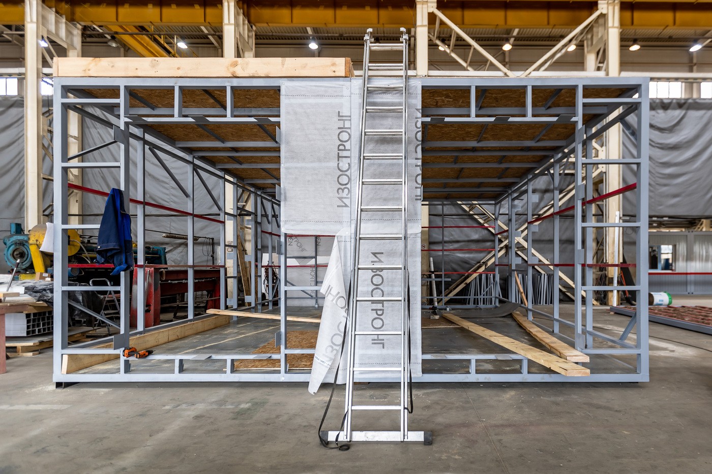 Каркас: основной несущий каркас из труб 40х80х3 с деревянными перемычками из строганой доски для крепления внутренней черновой отделки.