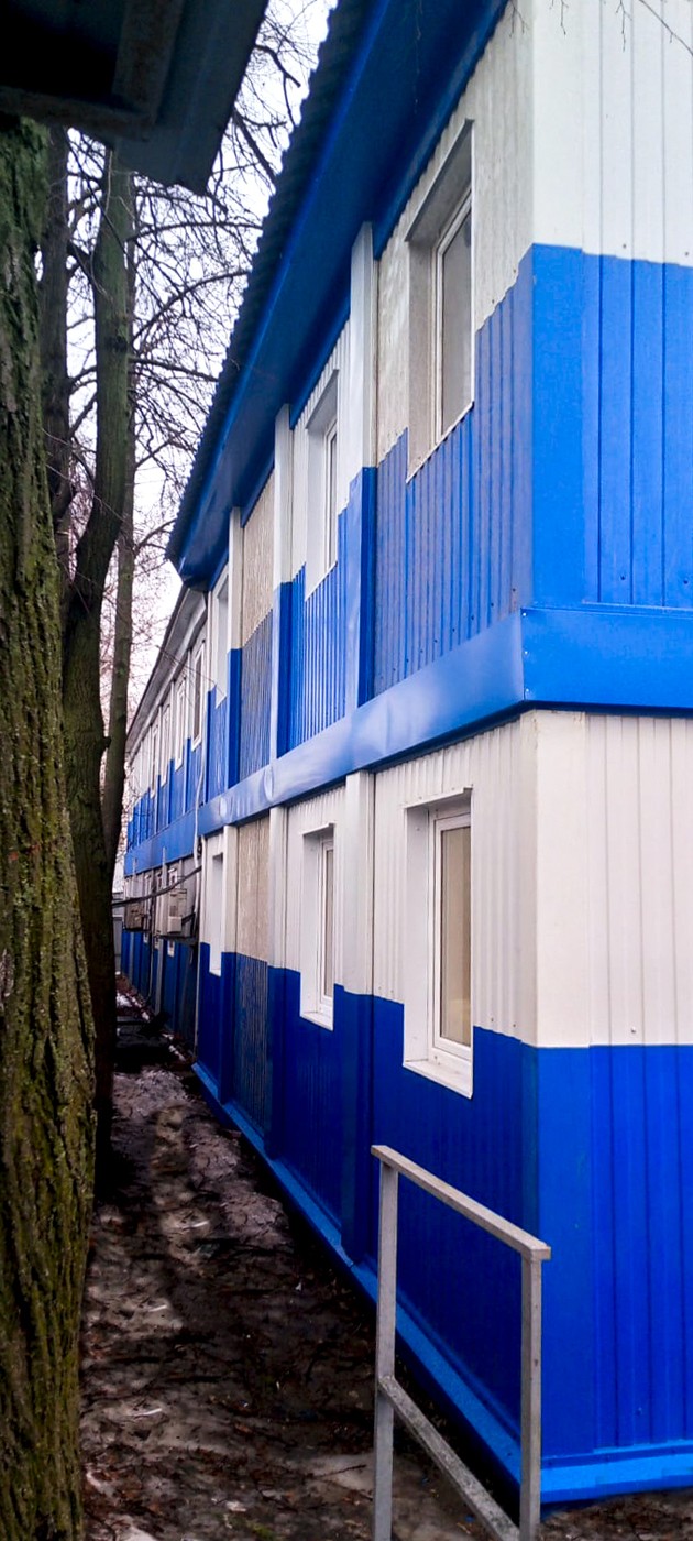 Двухэтажное модульное здание на базе восьми блок-контейнеров с габаритами 6,1 × 2,4 × 2,6 м. Общие габариты здания — 6,1 × 9,6 х 7,73 м, площадь – 117 кв.м.