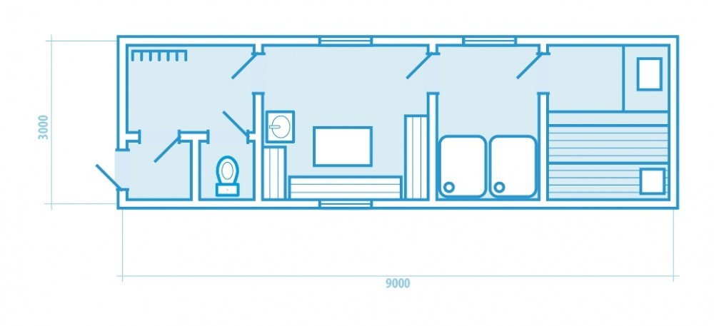 Данная планировка — лишь один из возможных вариантов исполнения модульного здания.Мы изготавливаем блок-контейнеры любого назначения на заказ и готовы учесть все ваши требования и пожелания.