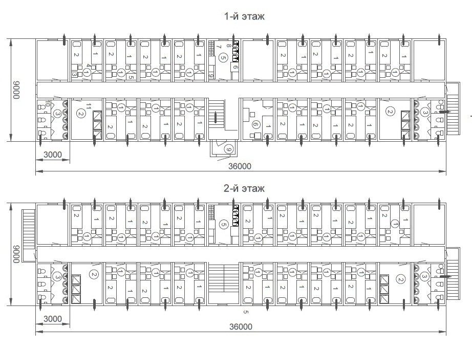 Данная планировка — лишь один из возможных вариантов исполнения модульного здания.Мы изготавливаем блок-контейнеры любого назначения на заказ и готовы учесть все ваши требования и пожелания.