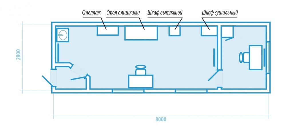 Данная планировка — лишь один из возможных вариантов исполнения модульного здания.Мы изготавливаем блок-контейнеры любого назначения на заказ и готовы учесть все ваши требования и пожелания.