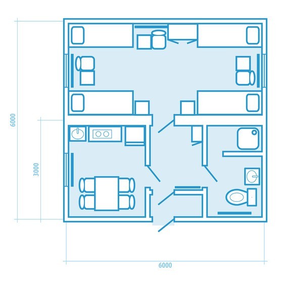 Данная планировка — лишь один из возможных вариантов исполнения модульного здания.Мы изготавливаем блок-контейнеры любого назначения на заказ и готовы учесть все ваши требования и пожелания.