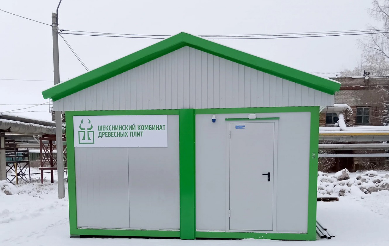 Блочное здание из контейнеров РосМодуль, площадью 30 кв.м. изготовлено для компании ДСК Войсковицы. Теплоизоляция контейнеров в соответствии с условиями эксплуатции минеральной ватой толщиной 100 мм. Для стен применяется минеральная теплоизоляция Кнауф термоплита - 037. Внутренняя отделка стандартными плитами ЛДСП толщиной 10 мм.